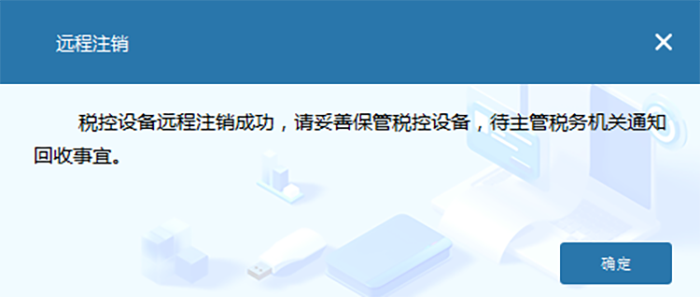 税控设备远程注销成功后,请妥善保管税控设备,待主管税务机关通知回收事宜。